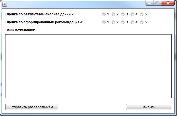 На основании полученных результатов анализа данных пациента СППВР Webiomed и сформированных рекомендаций для лечащего врача и пациента, пользователю доступна отправка соответствующих оценок и комментария разработчикам системы.